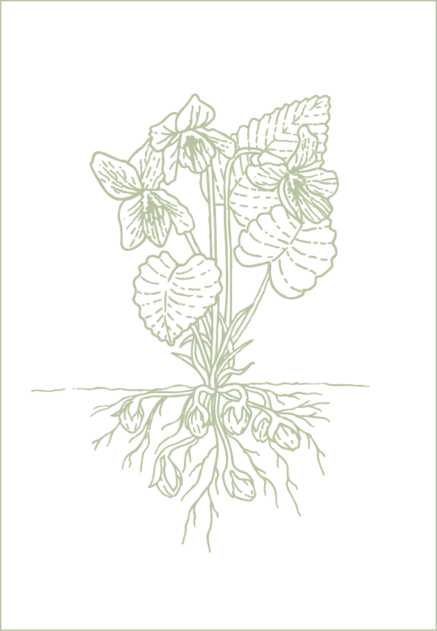 Violets are not only beautiful but biologically fascinating. In addition to their above-ground blooms, they produce cleistogamous flowers, or self-pollinating blossoms that grow underground. These hidden flowers reflect the our belief in the human body’s innate ability to heal when given the right care and conditions.